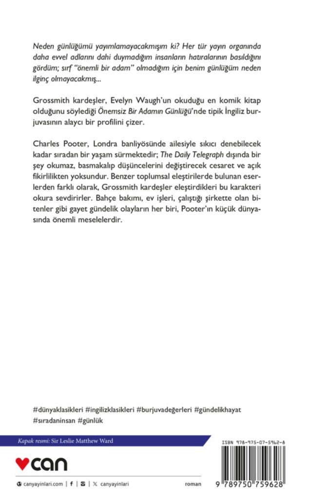 November 2, 2023 – My Turkish translation of Önemsiz Bir Adamın Günlüğü (The Diary of a Nobody), the comic novel by George Grossmith and Weedon Grossmith, is out from Can Yayınları.