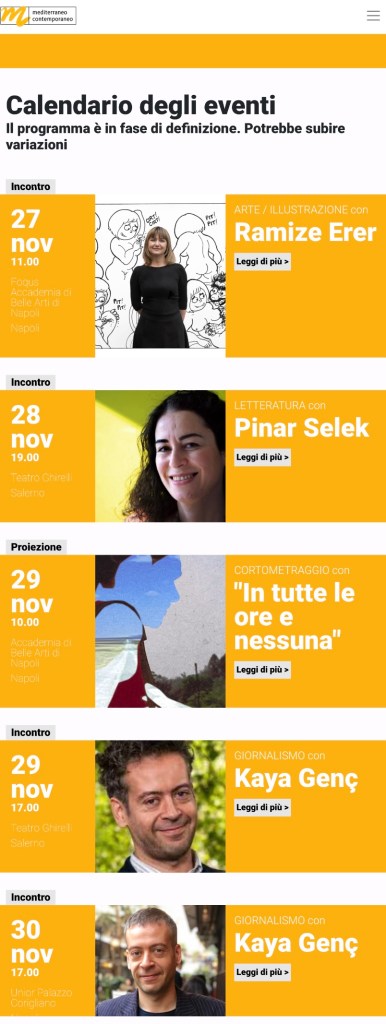 November 4, 2023 – I will talk about Il leone e l’usignolo: Un viaggio attraverso la Turchia moderna in Salerno, on November 29, and in Naples, on November 30, at the 2023 edition of Mediterraneo Contamporaneo.