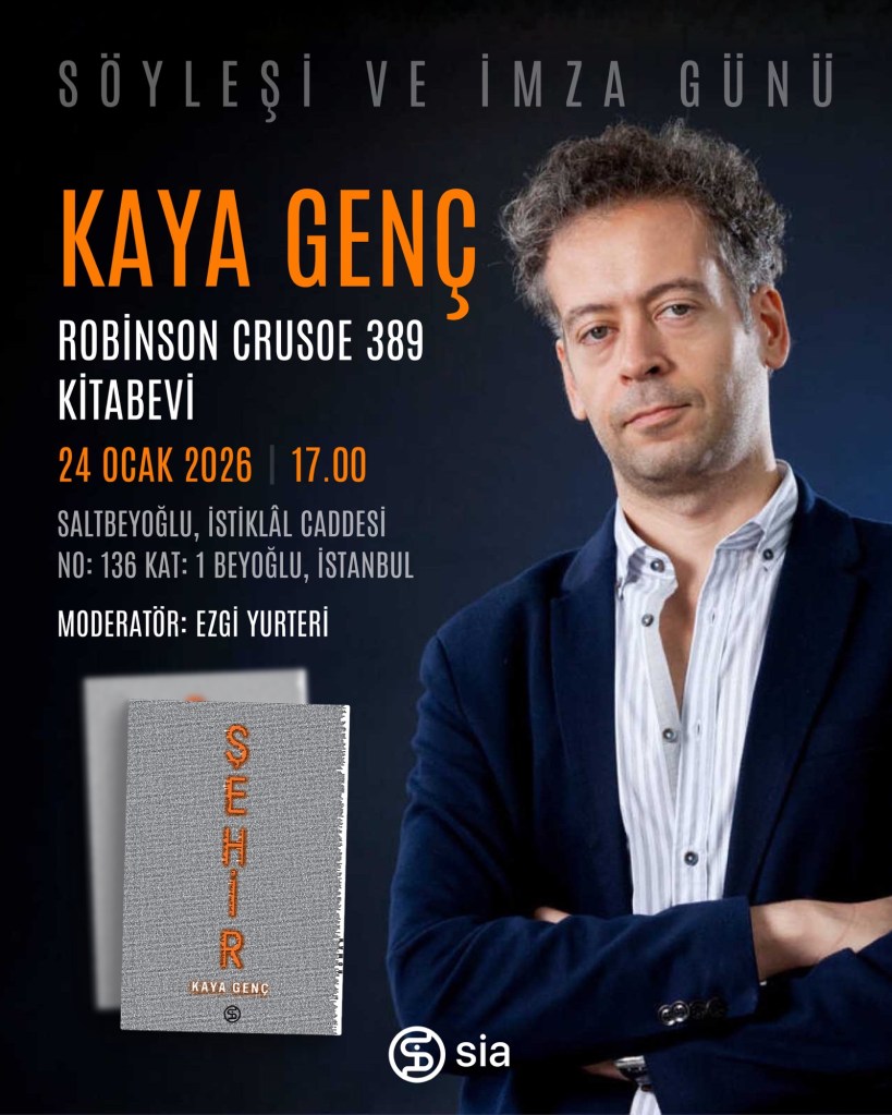 January 14, 2026 – Book talk with Ezgi Yurteri on January 24 at Robinson Crusoe 389 / Salt Beyoğlu on my new novel, Şehir.